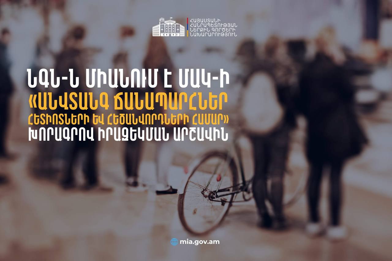 ՄԱԿ-ի Ճանապարհային անվտանգության համաշխարհային շաբաթվա շրջանակում մայիսի 12-18-ն անցկացվում է իրազեկման արշավ՝ «Անվտանգ ճանապարհներ հետիոտների և հեծանվորդների համար» խորագրով։