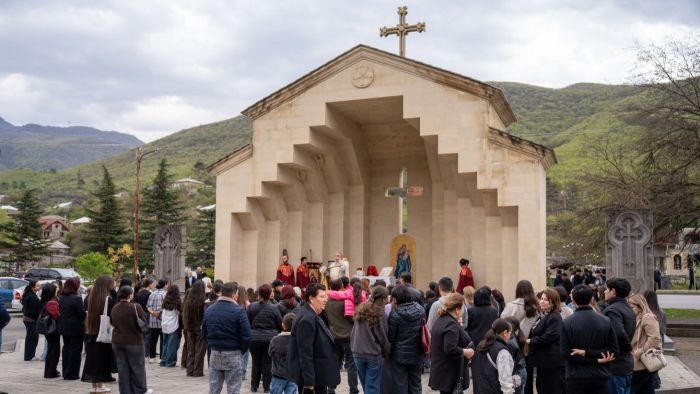 Քայլերթին համընթաց ընթանում էր Սուրբ Պատարագը՝ Ցեղասպանության նահատակներին նվիրված բաց խորանում։
